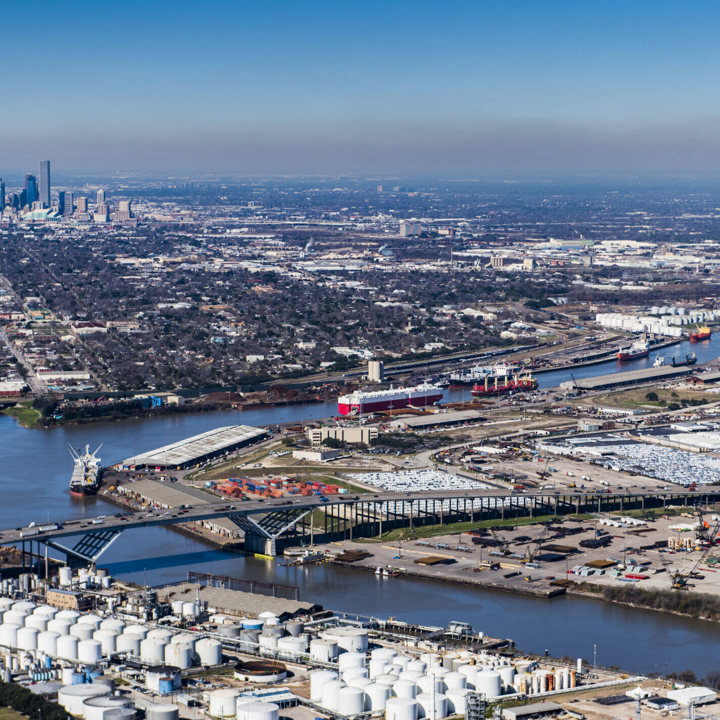 Port of Houston (Barbours Cut & Bayport terminals) Houston Ship Channel corridor Deer Park, La Porte, Pasadena chemical belt Baytown, Mont Belvieu, Texas City Galveston port operations BNSF & Union Pacific rail terminals 100-mile Houston metro radius
